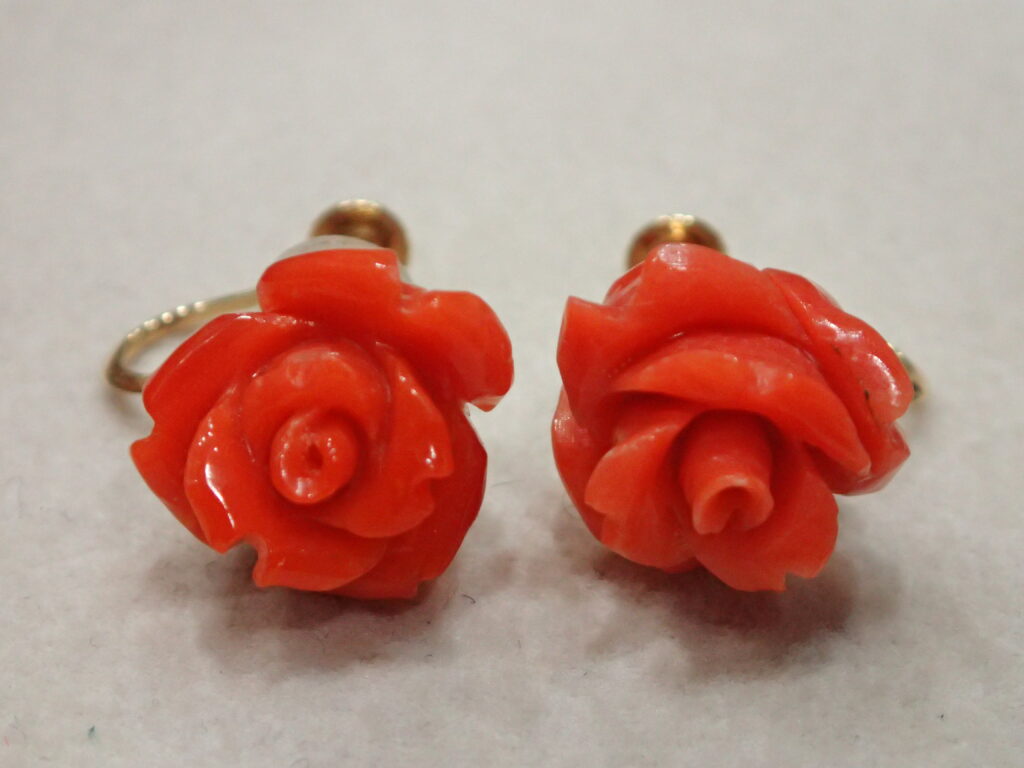 今日は、函館のお客様よりお買取した「 バラ珊瑚 K18 金 イヤリング(ローズモチーフ)」 の査定実績をご紹介します。