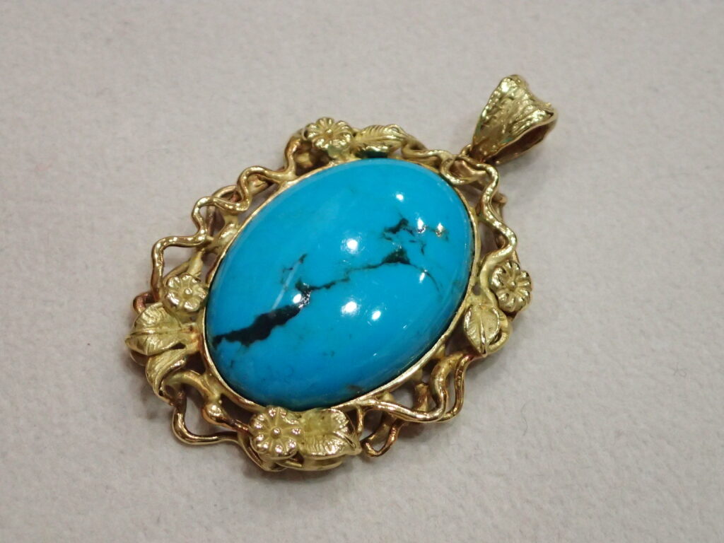 さて、本日は函館の当店で買取した金 K18 ターコイズ ペンダントトップ(トルコ石)をおご紹介します。
