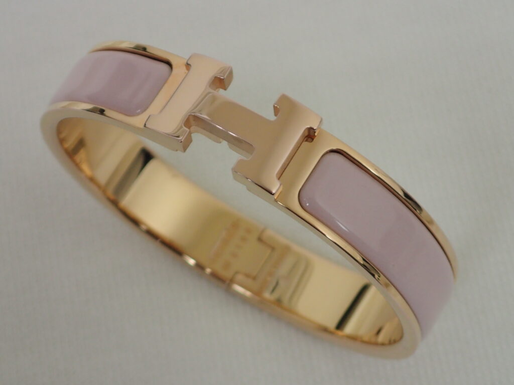 商品詳細:HERMES エルメス エナメル ブレスレット クリックH【カラー】ゴールド×ピンク 【サイズ】腕回り15.5cm 【付属品】保存箱・保存袋